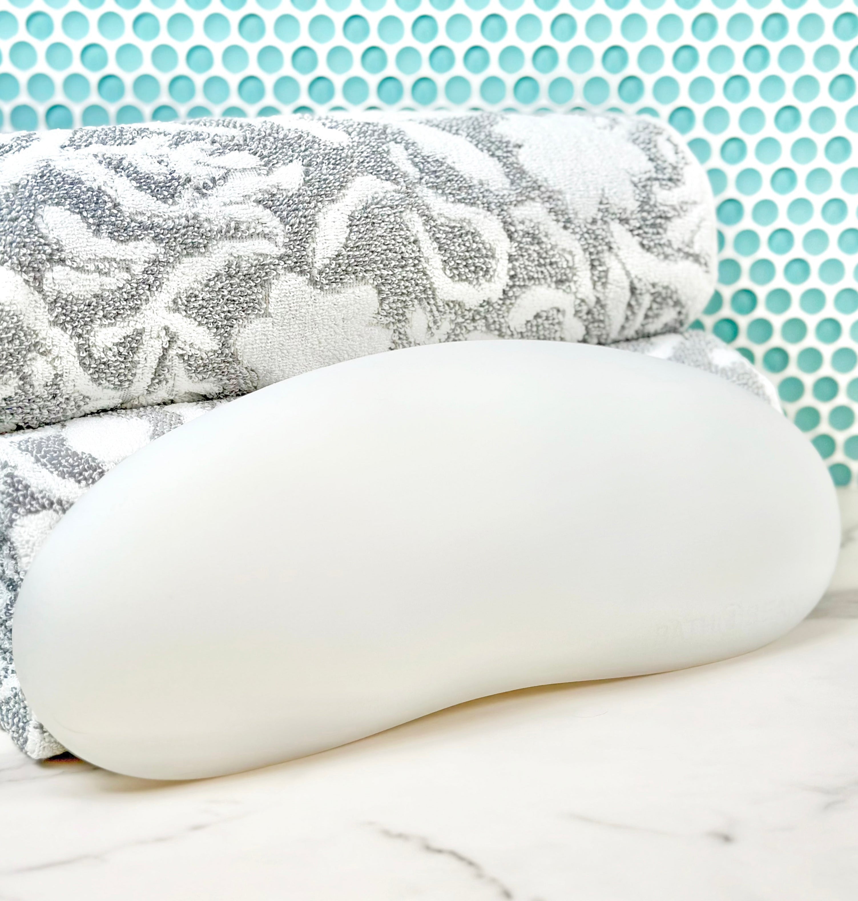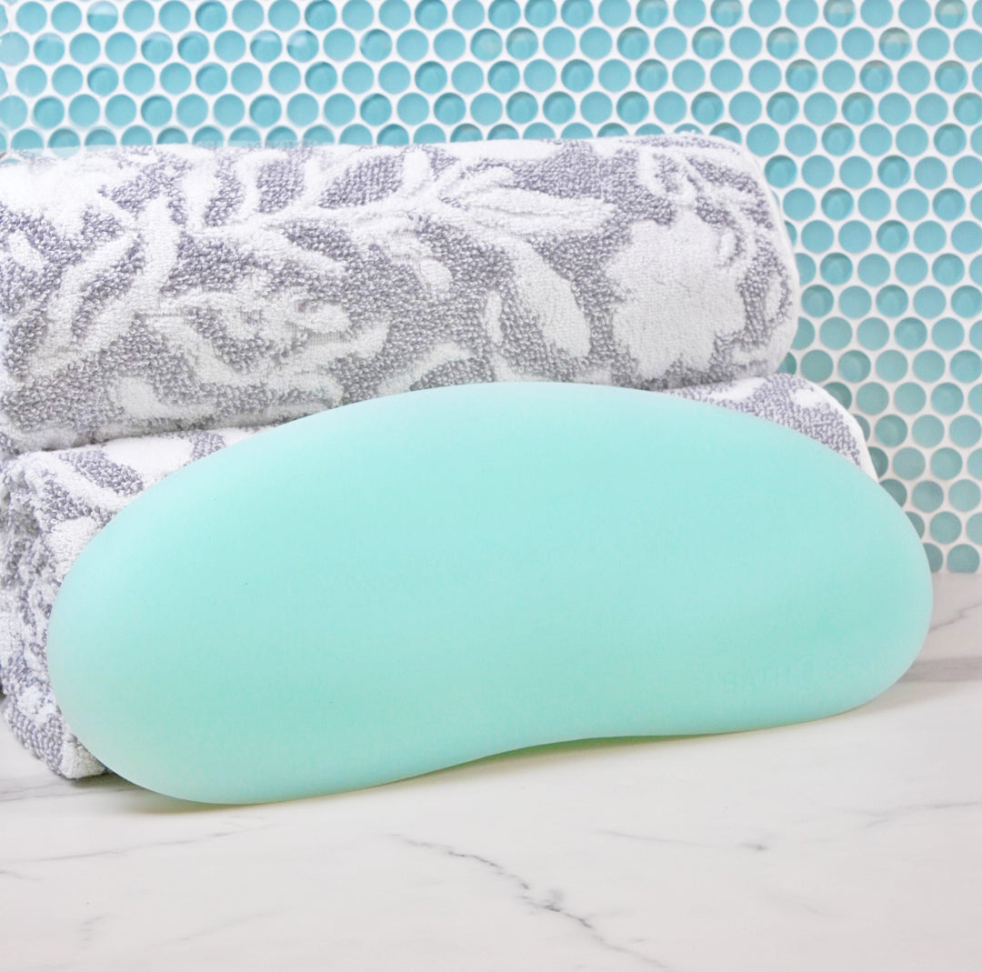 The Bath Bean® is not a pillow. Made from 100% FDA approved food grade silicone, the Bath Bean® weighs in at 2.5 lbs to ensure it stays in place…to keep you in place. It is dense, 1.5 inches thick, silky