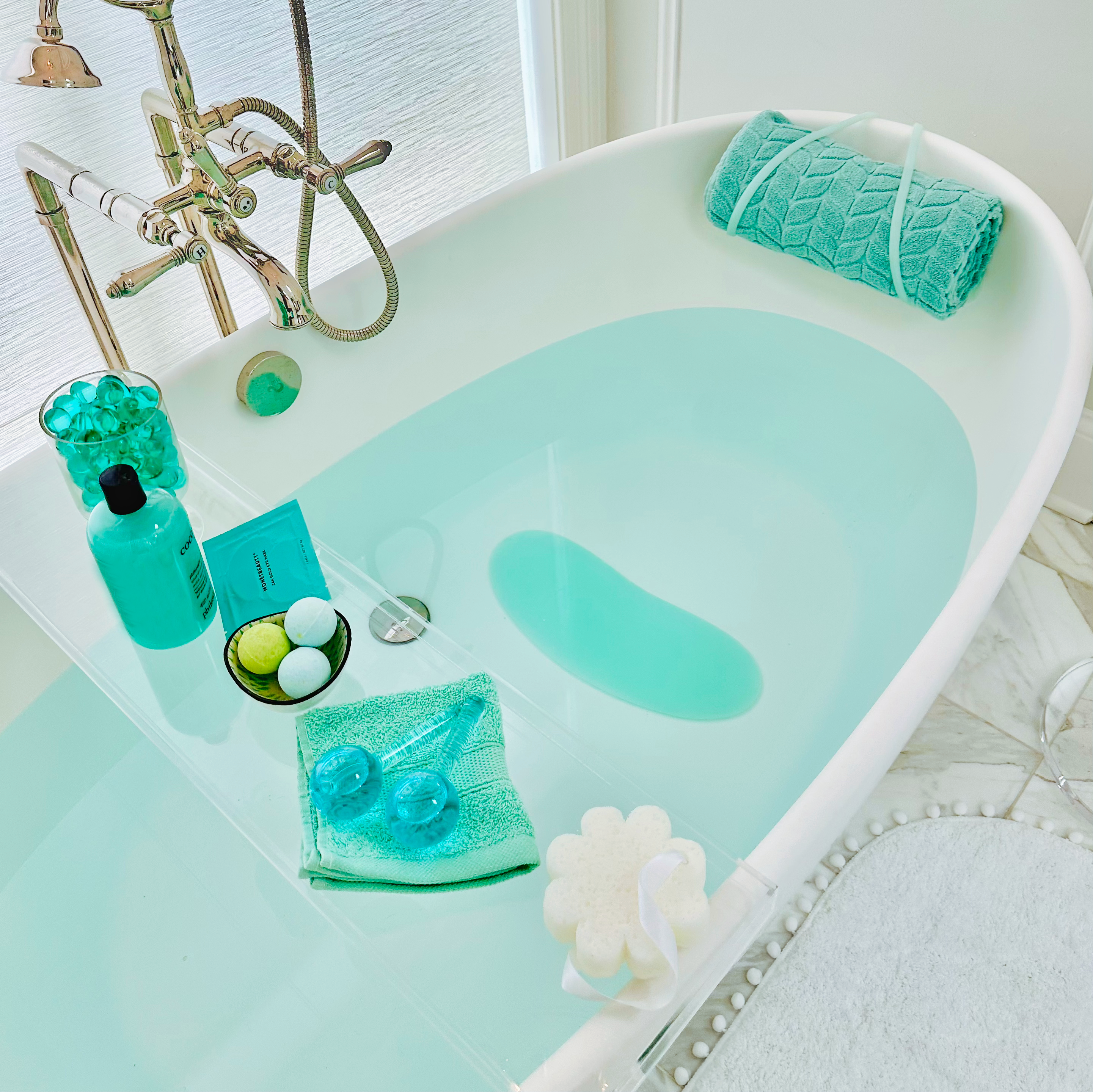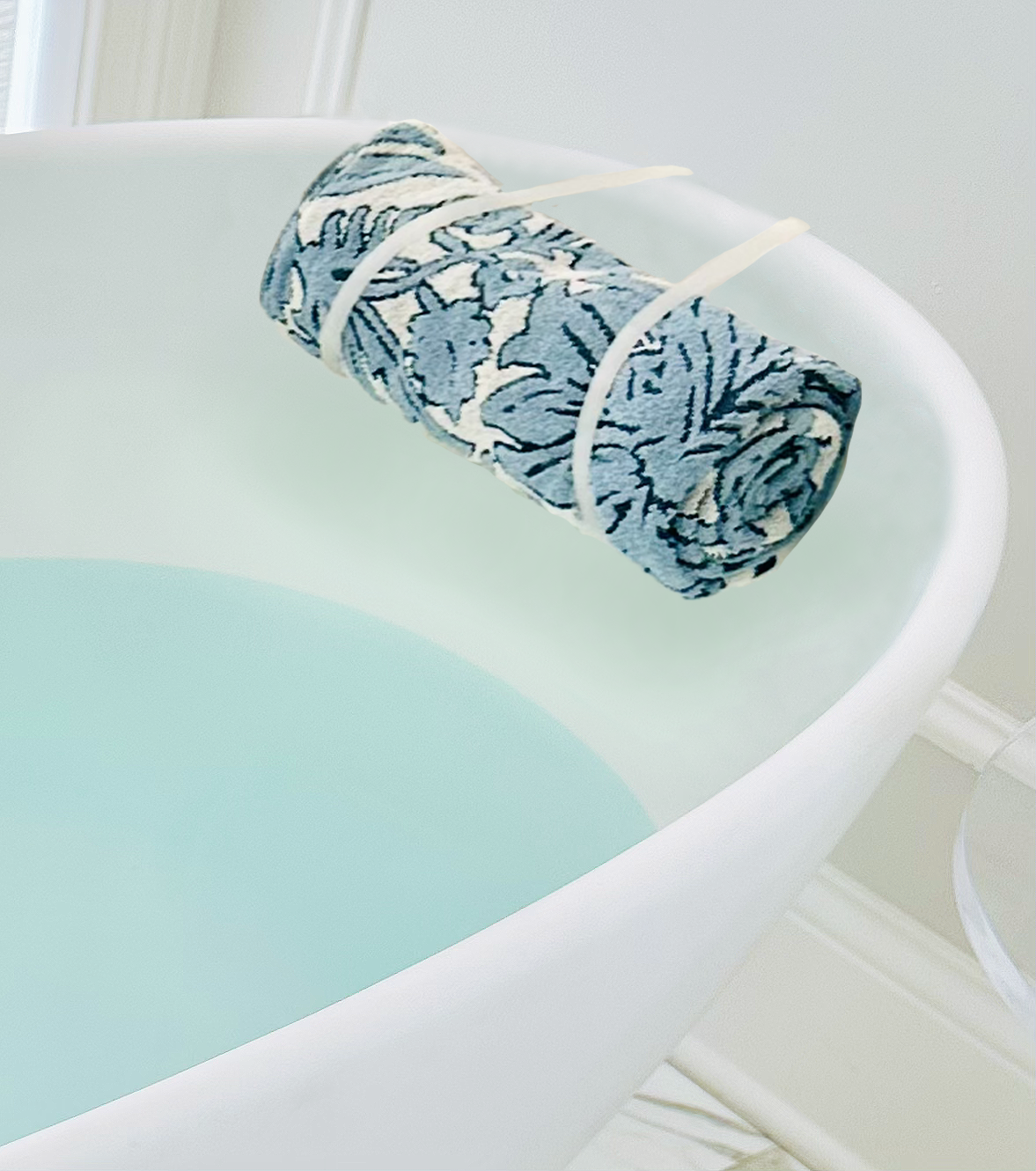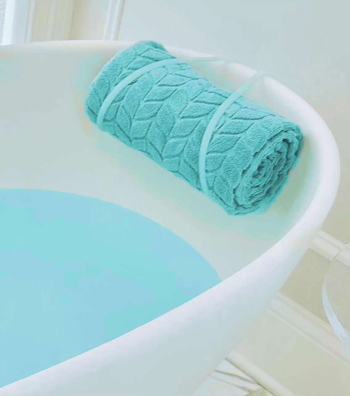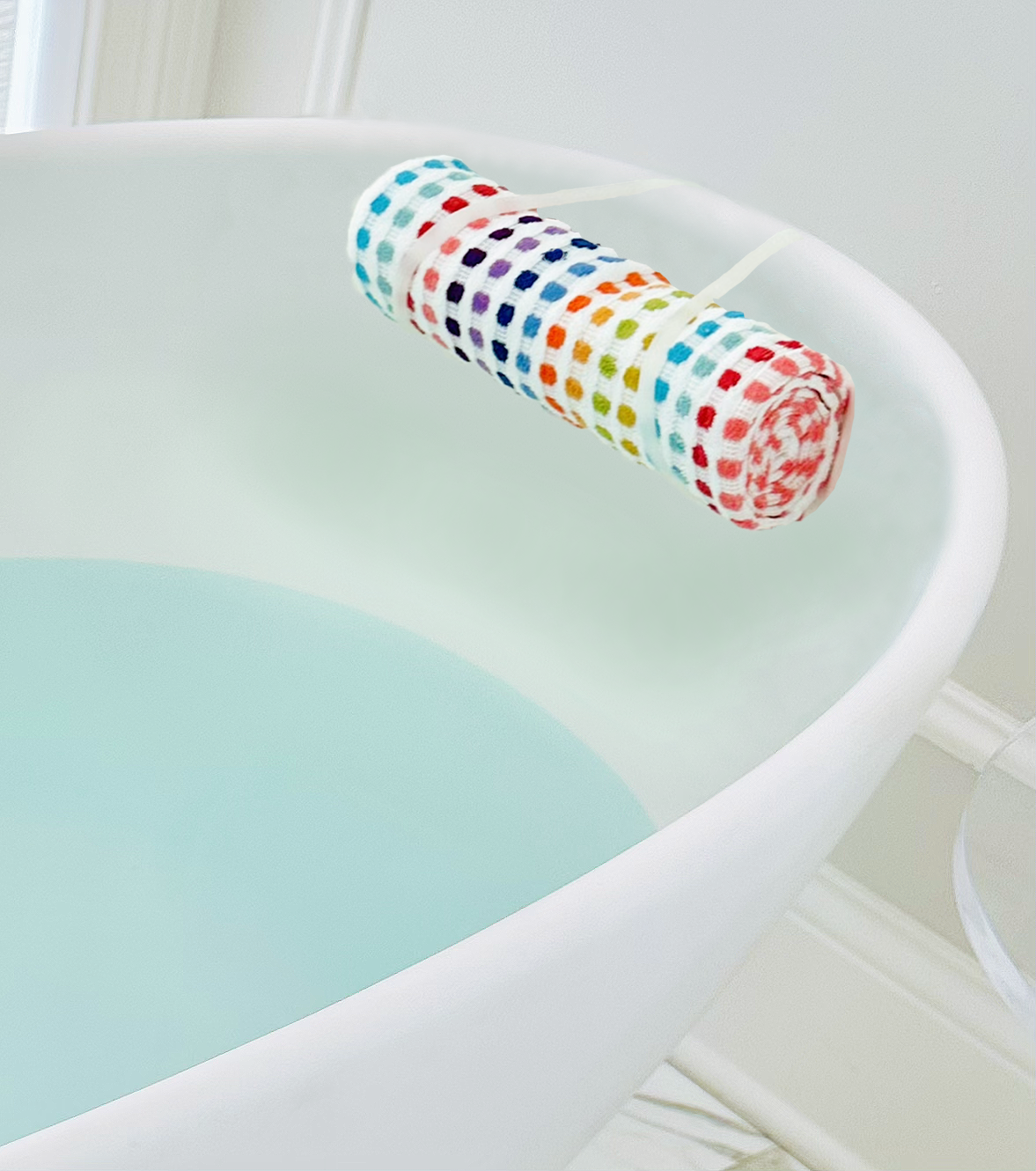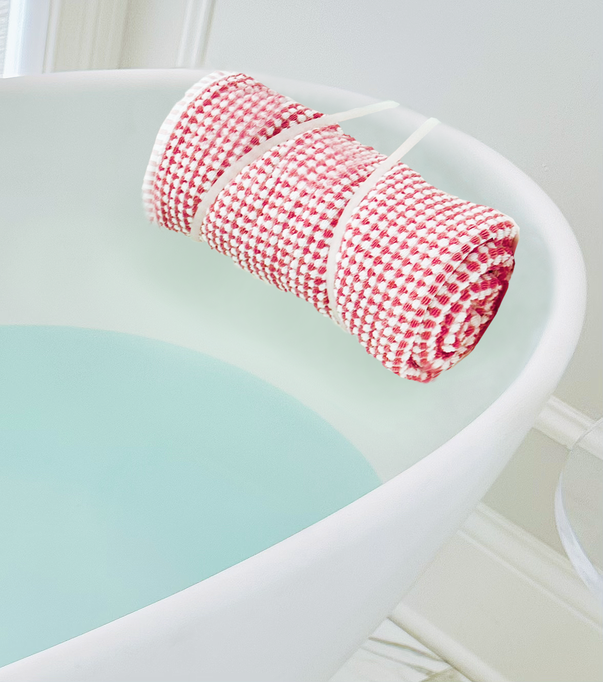 The Bath Bolster® is designed to secure a rolled towel to the bathtub to comfortably support your neck while reclining in the bath. Made with anti-microbial silicone, the Bath Bolster® resists mold and mildew and is dishwasher safe. Good bye to cheap, moldy bath pillows that get tossed over time. Pro Tip: Heat or chill your towel for a luxurious spa-like sensation.